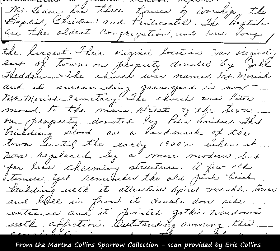Mt. Eden has three houses of worship, the Baptist,